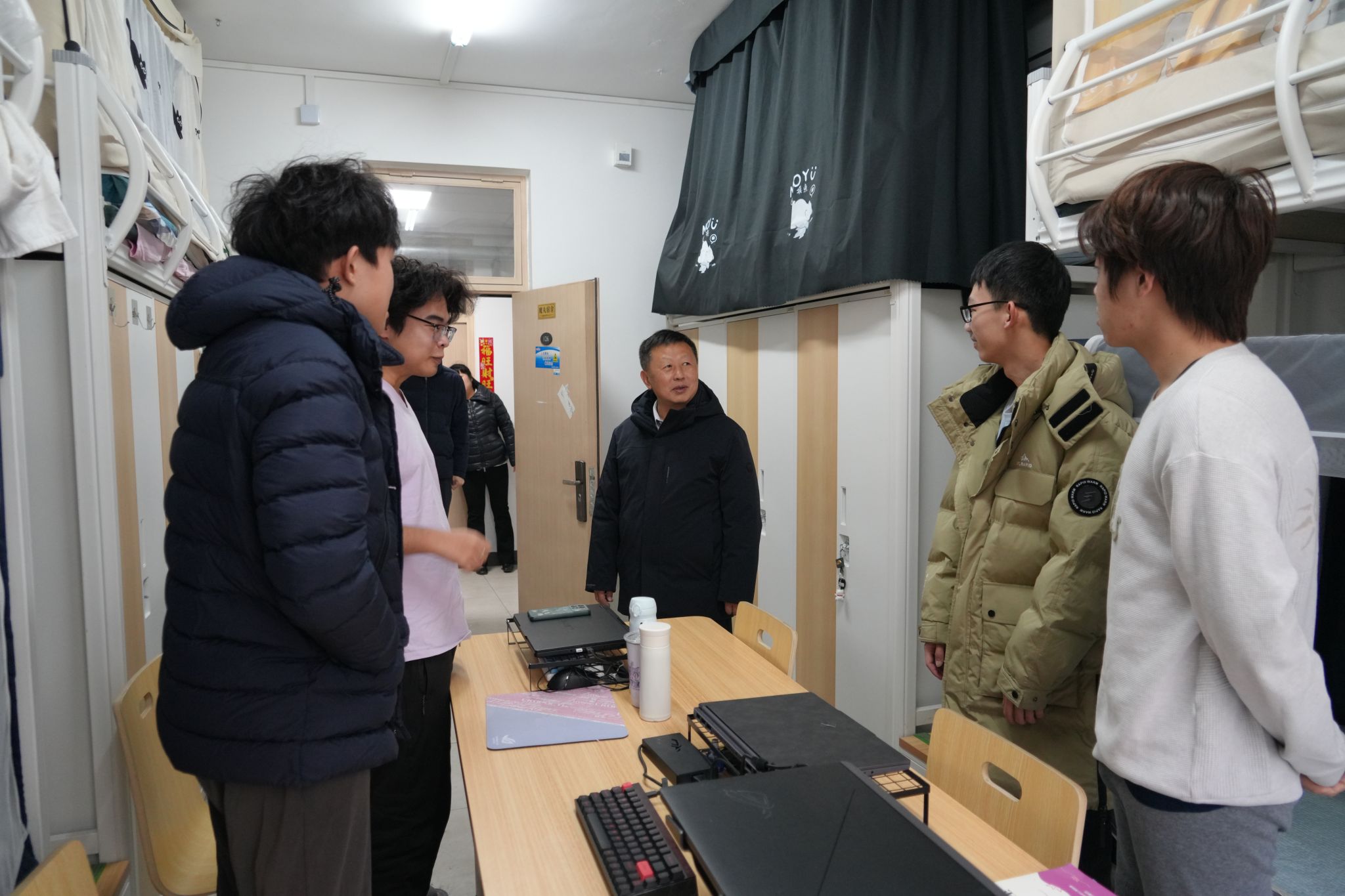 2月24日,副校长徐伟来到国际教育学院,实地走访留学生宿舍,听取留学生开学预备工做报告请示。徐伟强调,要高尺度做勤学校国际化扶植顶层设想,统筹推进师资、学生、教育成长等各范畴国际化工做。要全方位保障留学生开学平安不变,详尽做好留学华诞常糊口关怀和教育办事保障,成立起多部分联动的快速措置机制,规范涉外事项措置流程,鞭策留学生办理办事工做精准化、高效化开展。